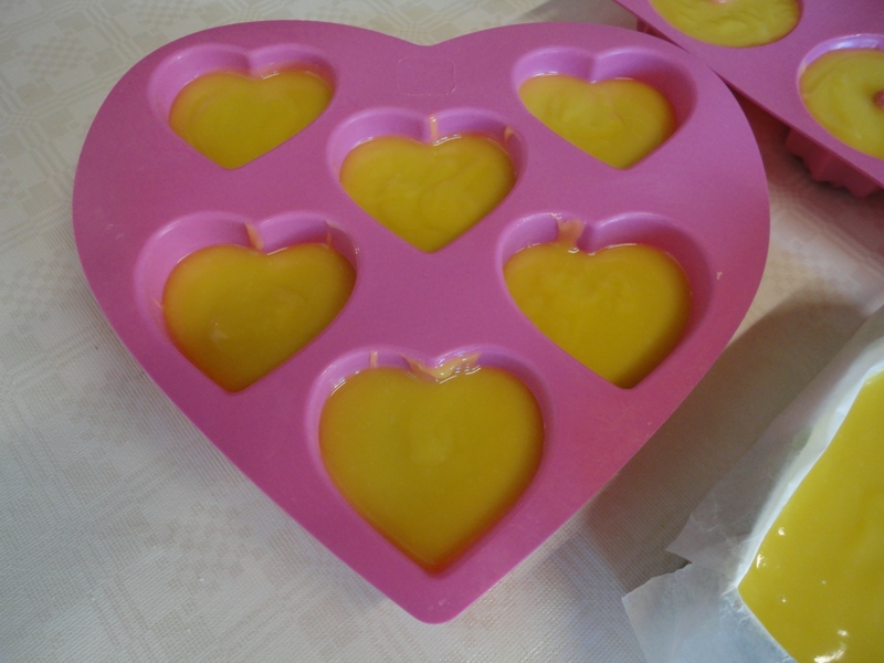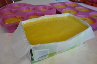 Já agora, aproveito para chamar a atenção para o molde que podemos fazer com um pacote de leite vazio. É só forrar com papel vegetal para que o sabão não entre em contacto com o revestimento interior e não se estrague. Quando o sabão endurece, desenformo e corto em pedaços mais pequenos.